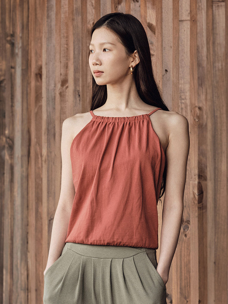- 交差ベルトのデザインによって、腰側を細身のシルエットにすることで、すっきりとしたコーディネートを実現。