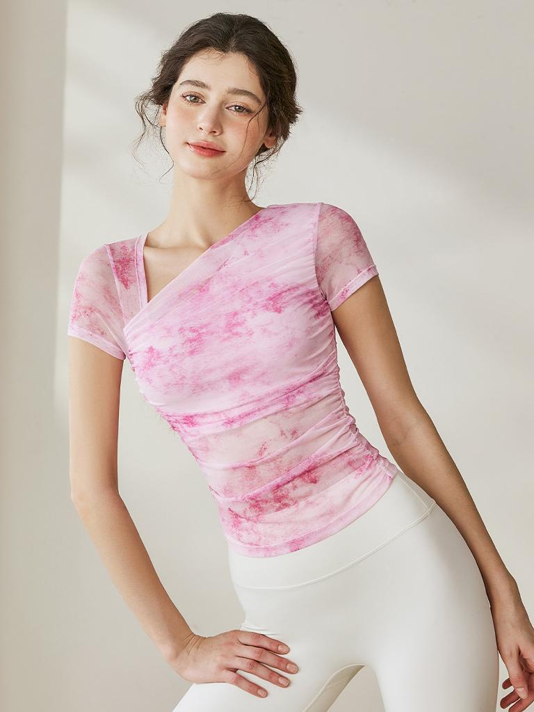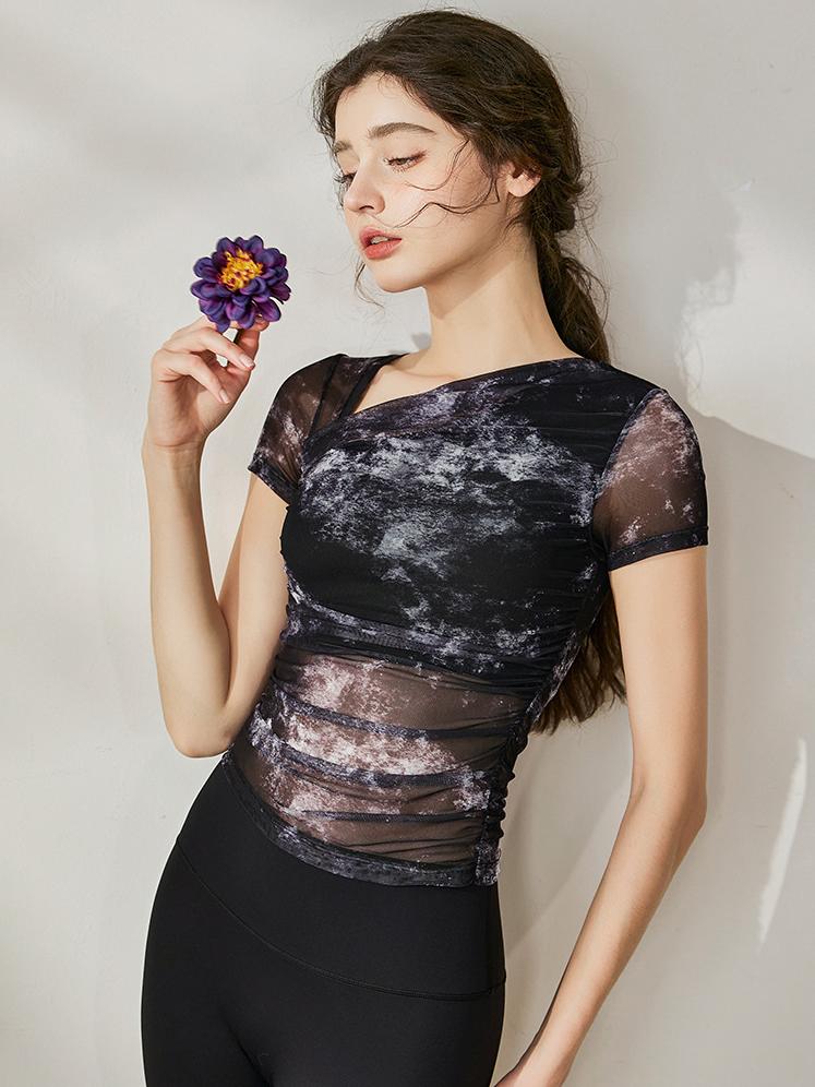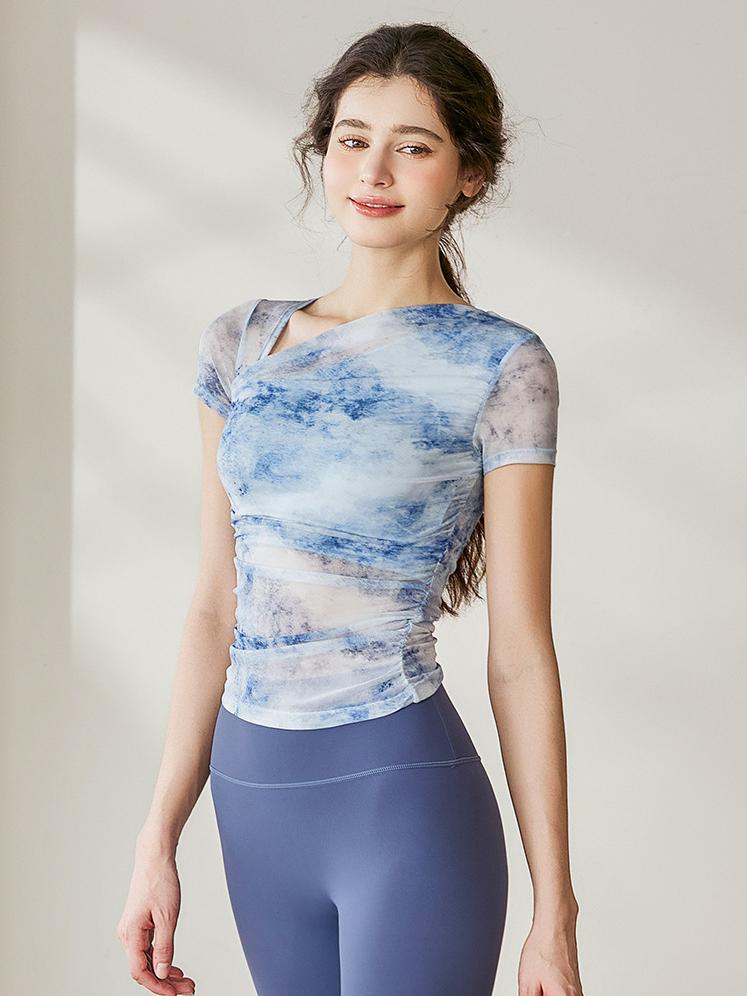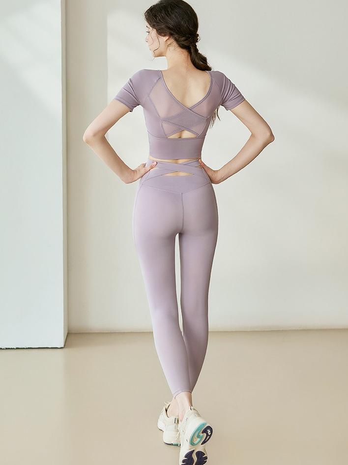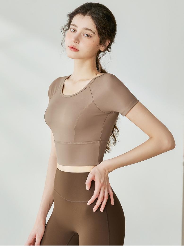 取り外し可能 パット付きXバック ヨガ半袖トップス
