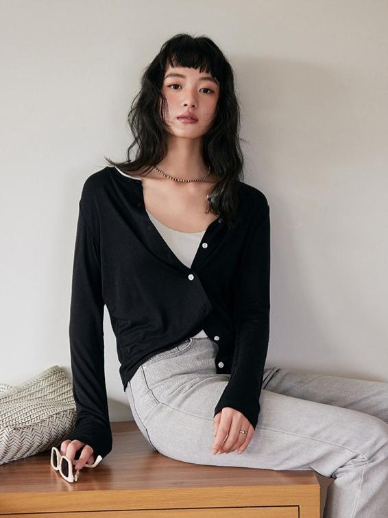 カシュクールショート丈 長袖Tシャツ